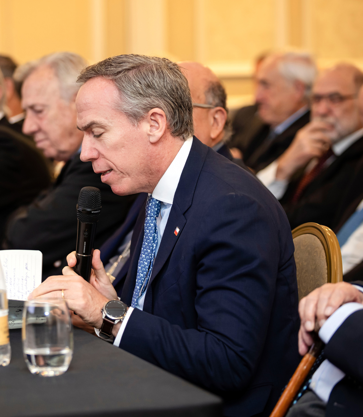 Con la conducción del Presidente del Consejo, don Alfredo Moreno Charme y la distinguida presencia de altas autoridades nacionales, como el Presidente de la Cámara de Diputados, Jorge Alessandri; el Cardenal Arzobispo de Santiago, Fernando Chomalí; el Vicepresidente del Senado, don Iván Moreira; el Comandante en Jefe de la Armada, cinco ex Cancilleres, el Subsecretario de Relaciones Exteriores, altos directivos de asociaciones empresariales, académicos y expertos internacionalistas, el Ministro Pérez Mackenna realizó una sólida exposición que abarcó asuntos políticos vecinales, regionales y globales, económico – comerciales y organización de la cancillería