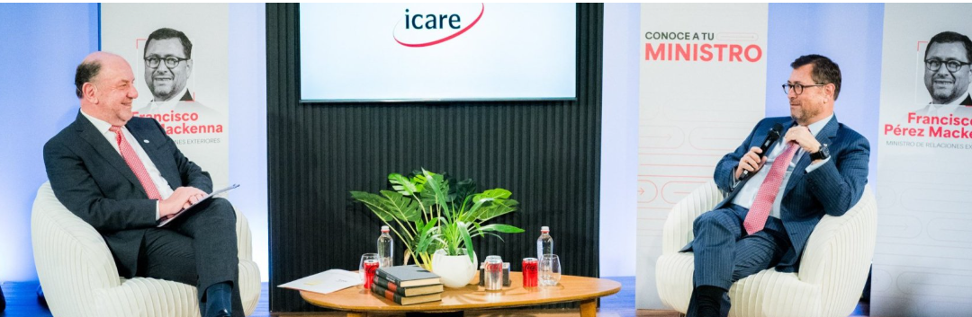 En el marco del ciclo de conferencias “Conoce a tu Ministro”, promovido por Icare, el Presidente del Consejo Chileno y excanciller, Alfredo Moreno Charme, condujo este miércoles 25 de marzo una extensa entrevista con el actual Ministro de Relaciones Exteriores, don Francisco Pérez Mackenna.
